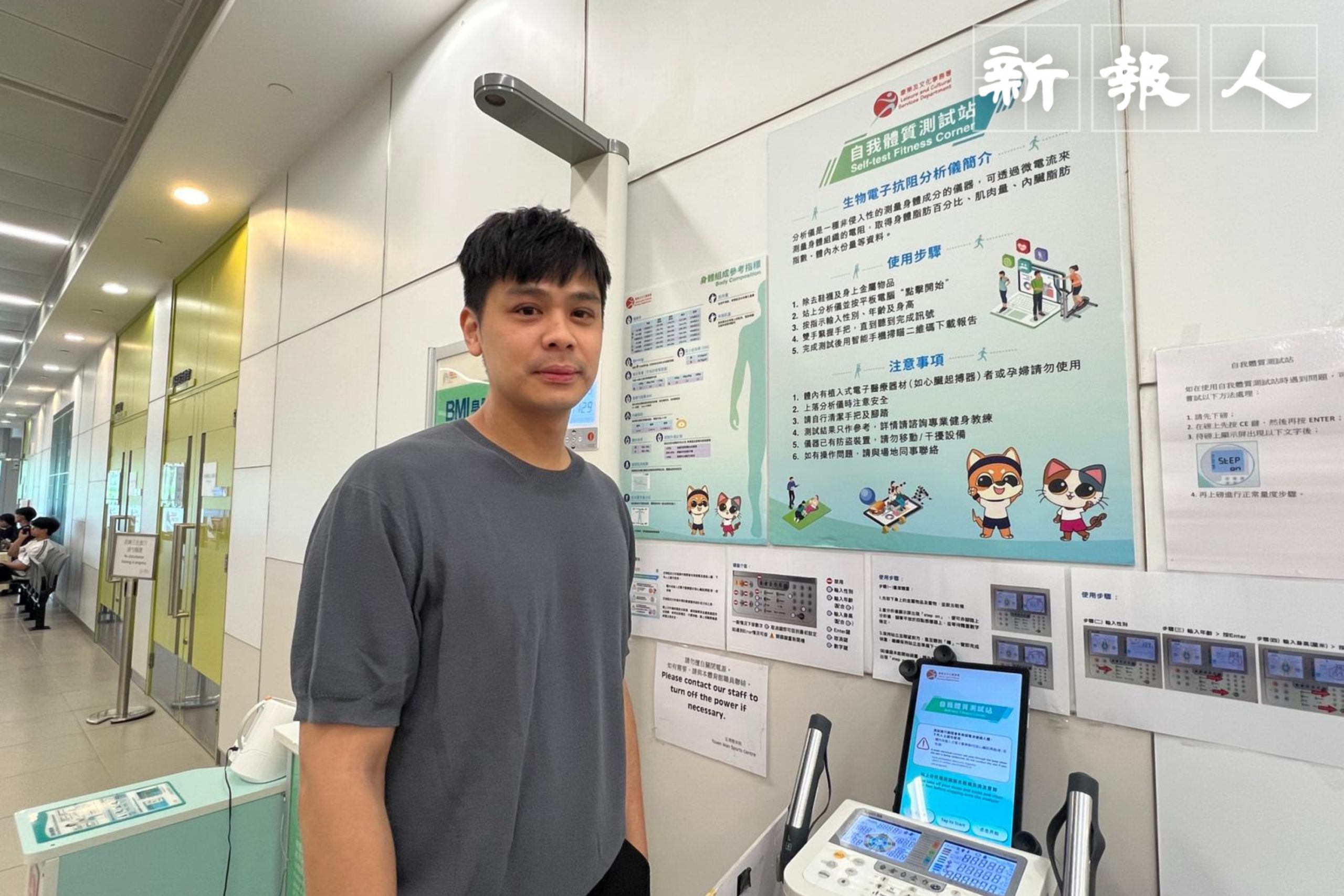 蕭洛彤指,留意到康文署已設有告示,但部分市民使用時較心急,忘記除下個人物品,相信若體脂機在社區普及,市民會更留意正確測量姿勢。