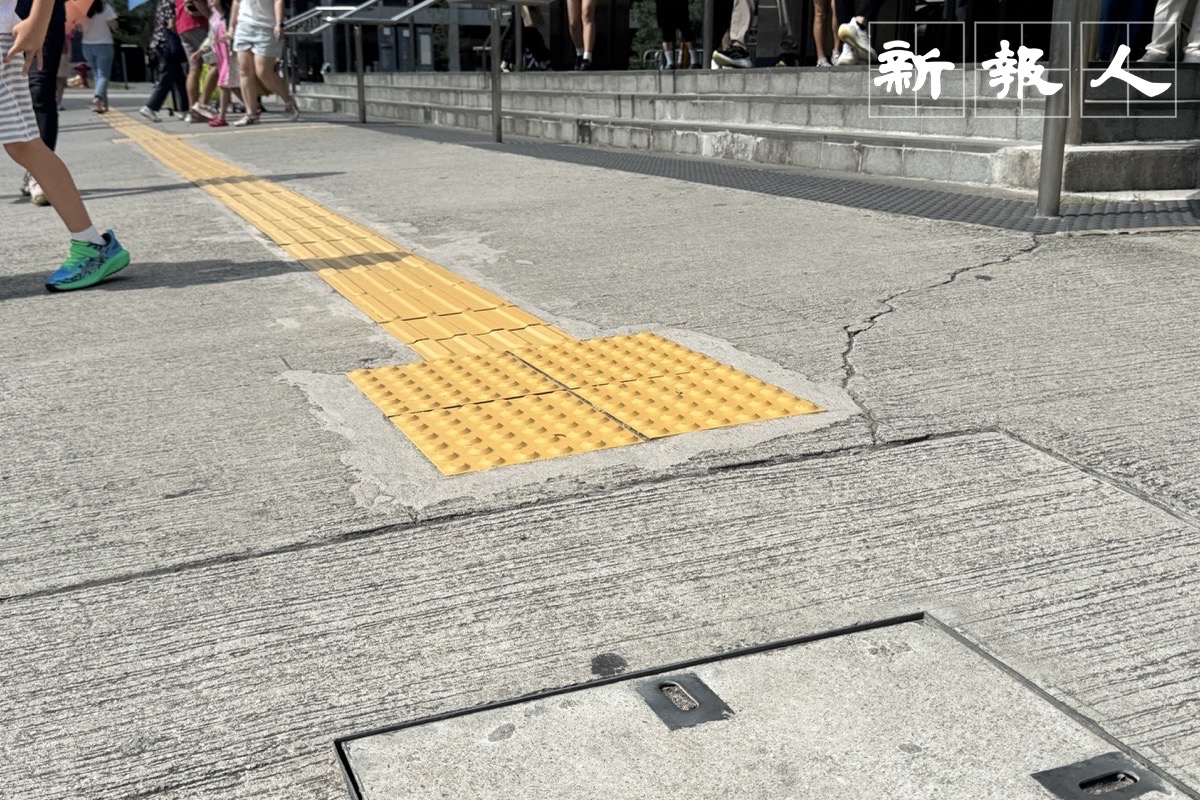 他又指,部份引導徑旁,有時會有輕微凹位,地下標記如維修電線位等,當他使用白杖探路時,白杖會被渠蓋的凹洞卡着,亦因地面的凹凸不平與引導徑重疊,使其難以區分渠蓋及引導徑。