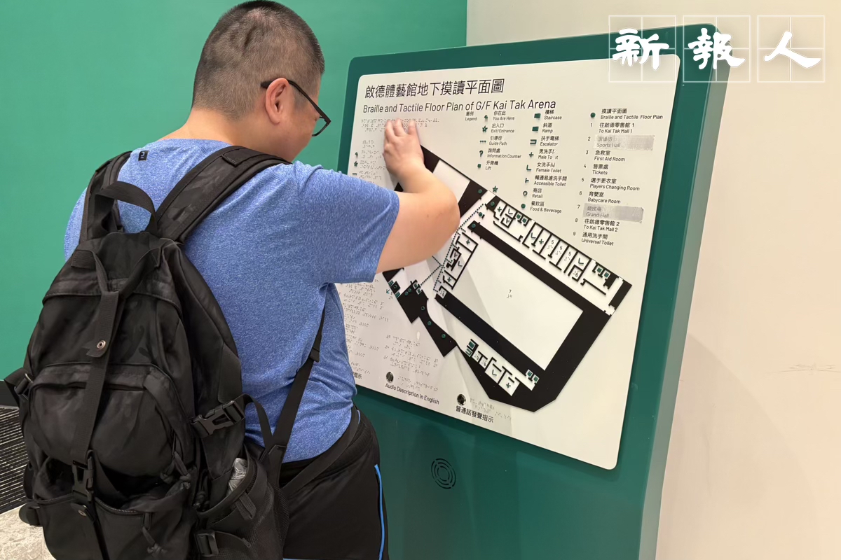 至於摸讀地圖發聲系統,康文署則指,啟德車站廣場的三個摸讀地圖均未設有發聲裝置,其根據屋宇署發出的《設計手冊:暢通無阻的通道2008》指引已設引導徑指引視障人士至摸讀地圖,而地圖主要提供觸覺點字和凸字資訊。署方指轄下場地會因應實際環境及場地運作需要,提供有發聲功能的摸讀地圖,亦會至少每兩星期派員巡查轄下戶外遊樂及康體設施,包括摸讀地圖,以確保設施運作正常。