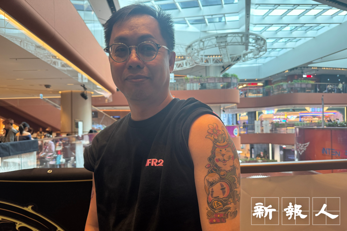 任職物業管理的50歲莫先生在啟德商場紋身檔口,也因為見到Athena的小熊圖案合心意,即場光顧,在右手紋上粉紅小熊,與左手武士貓大圖案形成強烈對比,這個武士貓中間有「伍」字,原來是他50歲生日是紋上,作一個記錄。「紋身係想將靚嘅嘢擺喺身上,可以記住佢,無咁容易消失」。