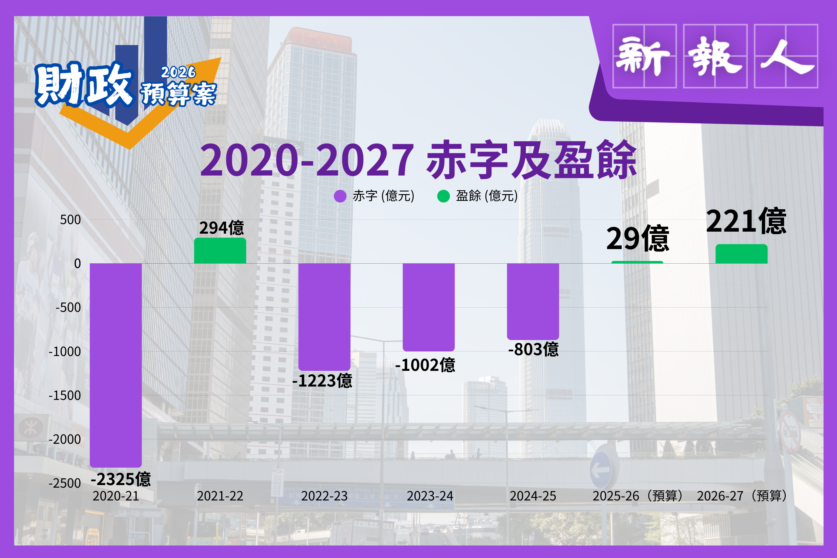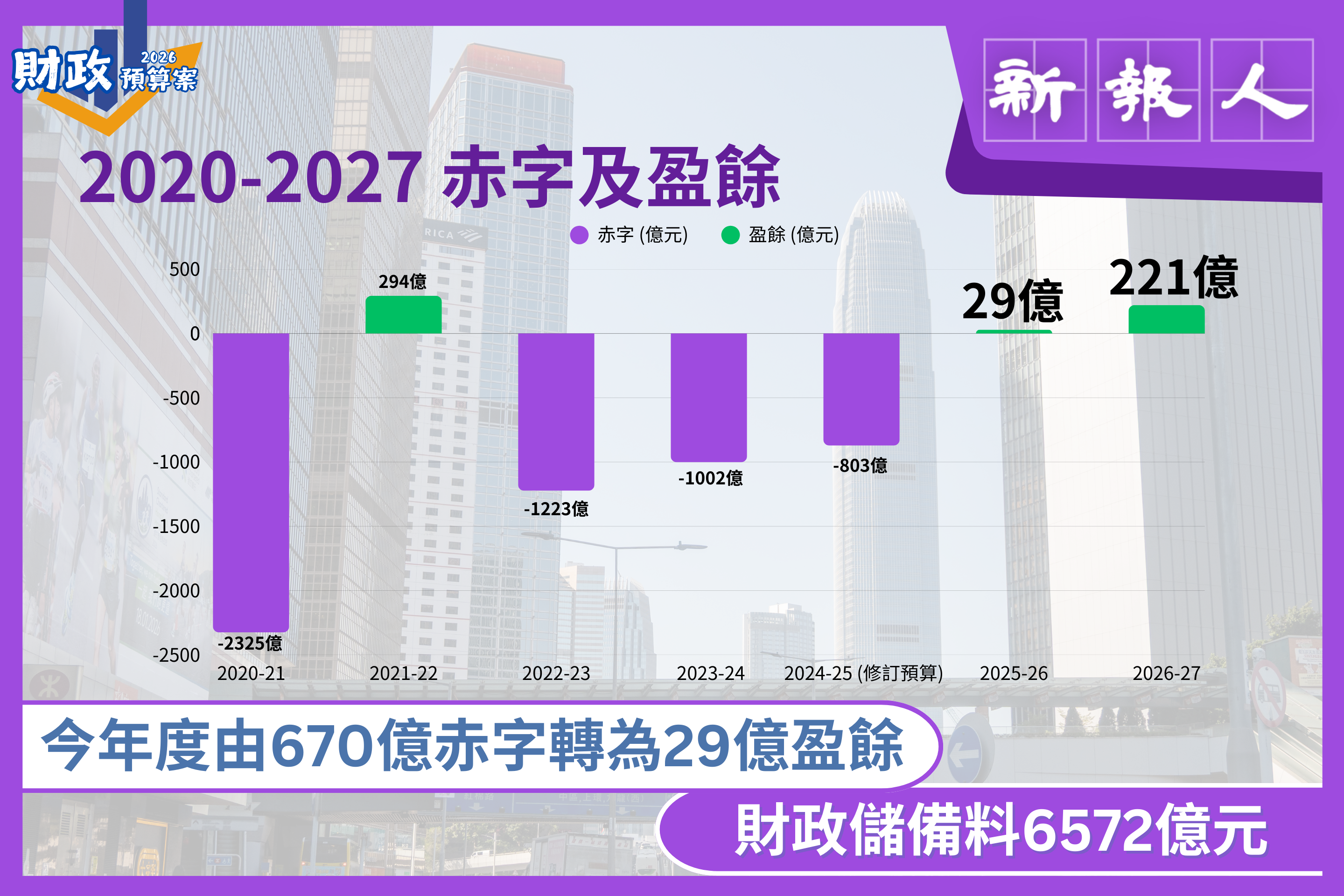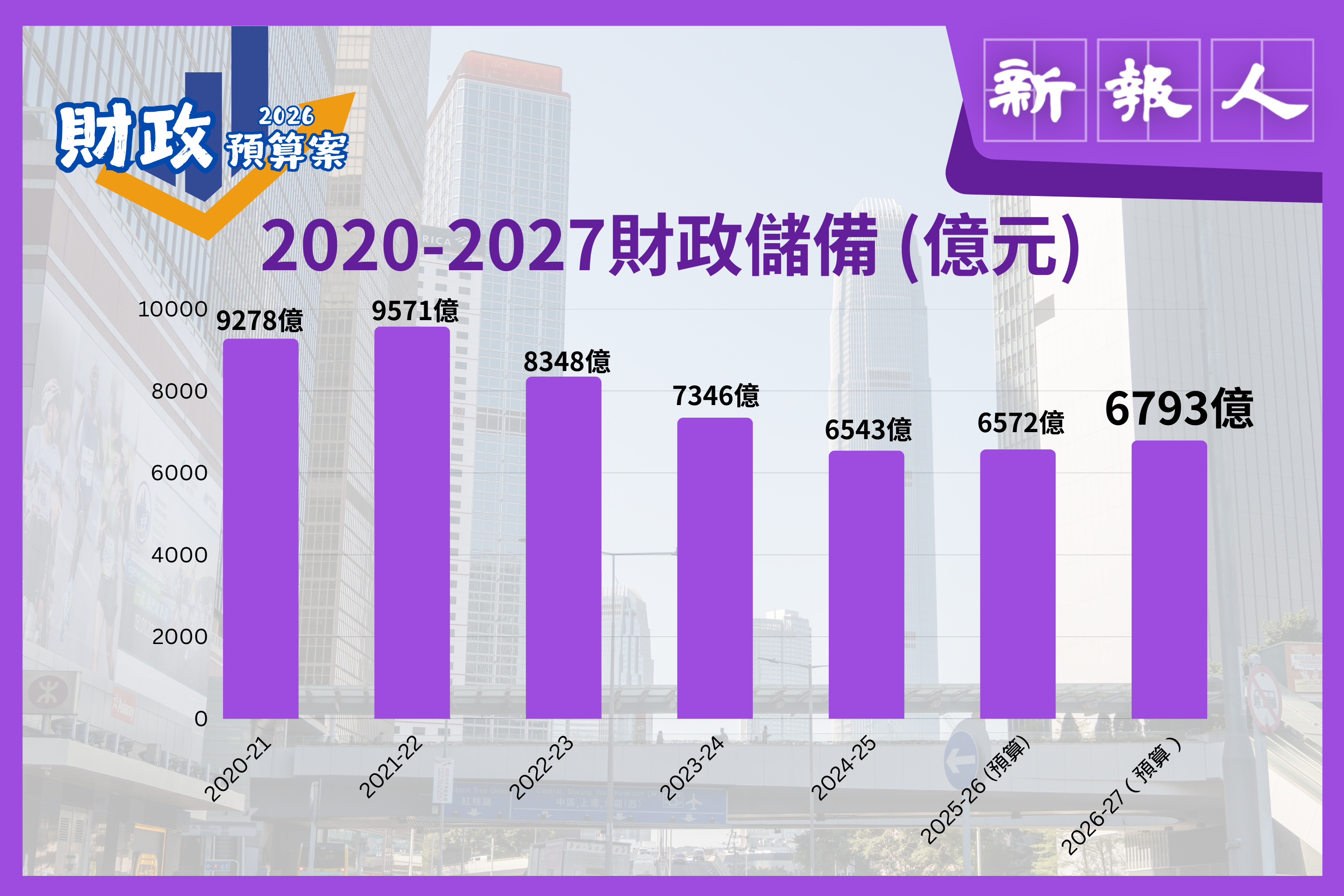 政府預計26/27年度綜合盈餘為221億元,財政儲備將上升至6793億元。